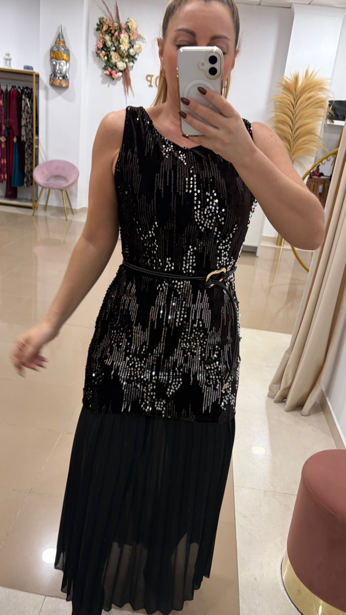 Vestido Lorena Marrón Combinado Con Negro
